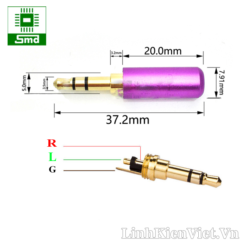- Jack Audio 3.5mm đực 3 chân lõi đồng vỏ nhôm (Tím)