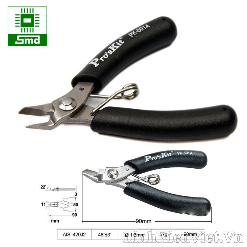 - Kìm cắt chân linh kiện Pro'sKit 1PK-501A(90mm,Ø 1.3mm) (ProsKit 1PK 501A)