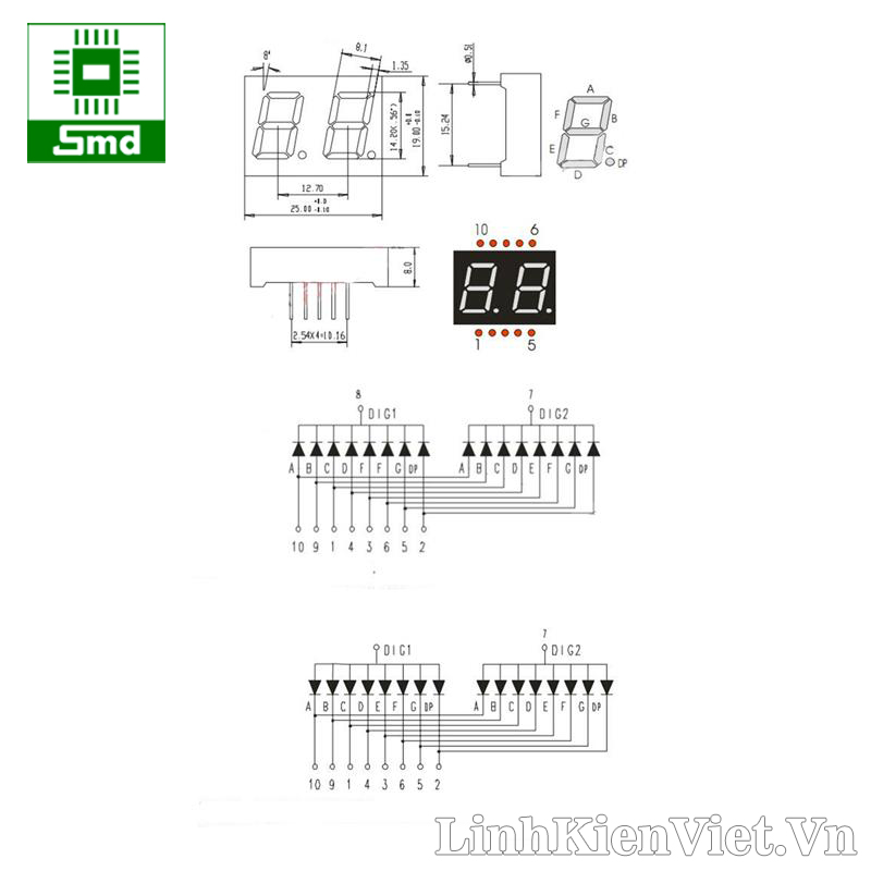 1. Led 7 thanh 0.56 X 2 dương chung (RED)