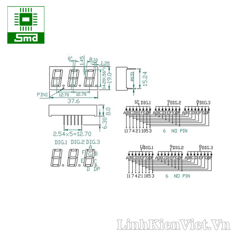 1. Led 7 thanh 0.56 X 3 âm chung (RED)