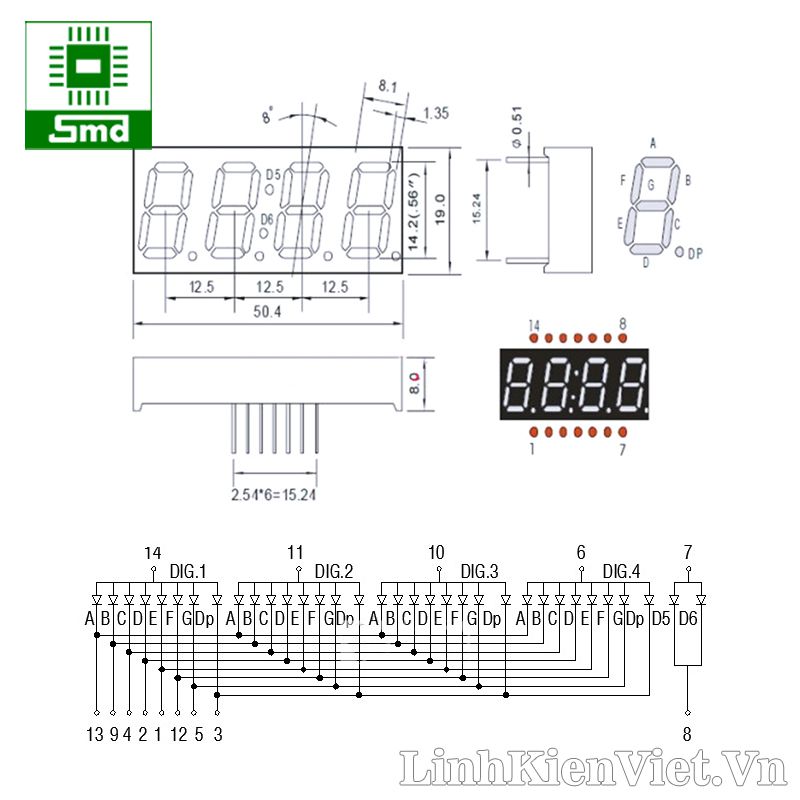 Led 7 thanh đồng hồ 0.56x4 âm chung