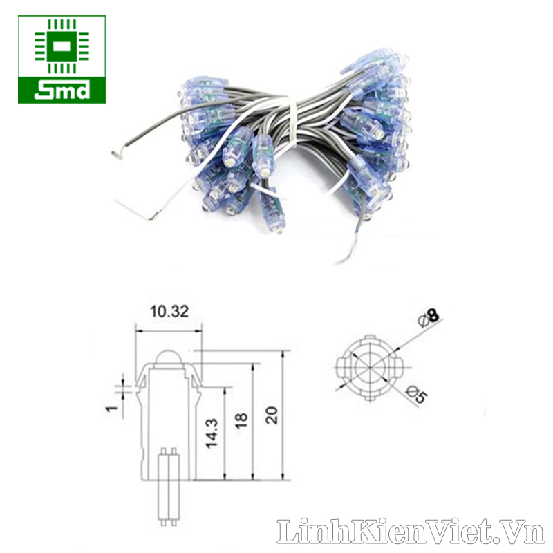 - Led đúc phi 5 đế 8 (màu trắng)