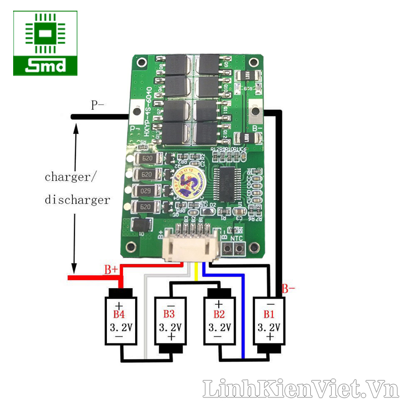 - 1x Mạch Bảo Vệ Pin LifePo4 4S 14.8V 20A