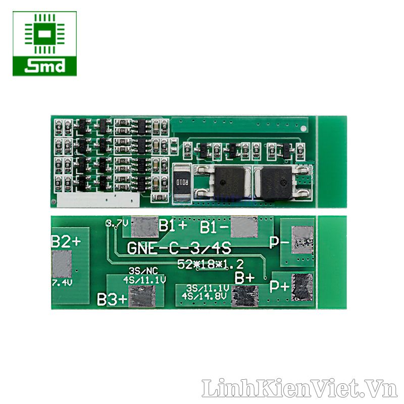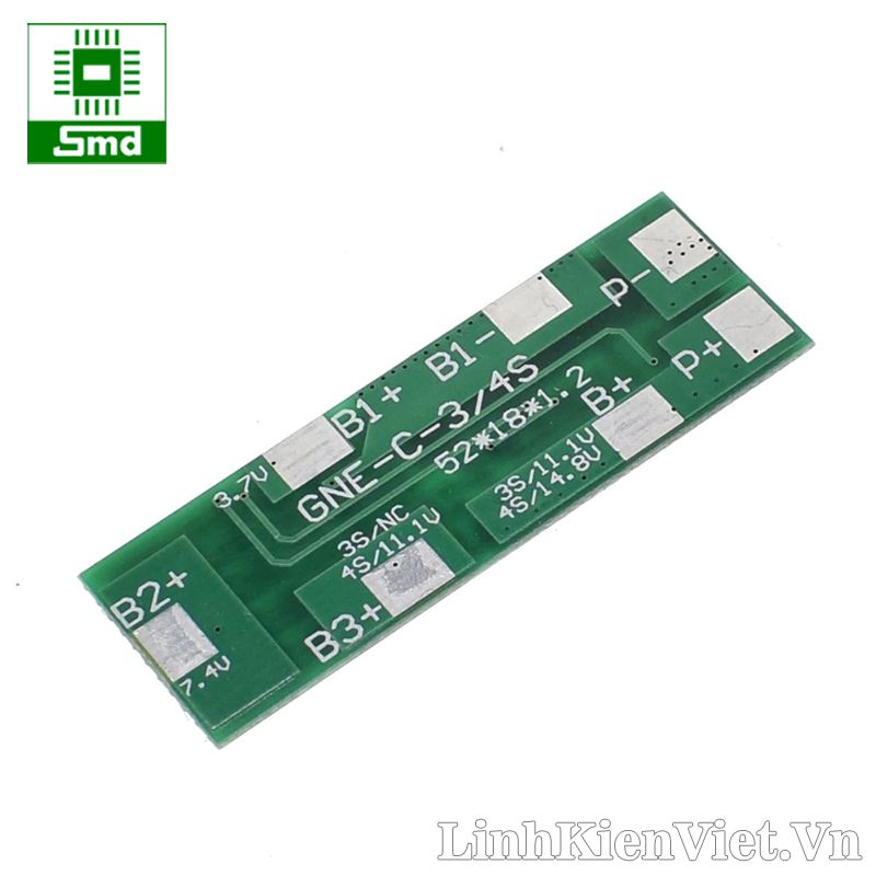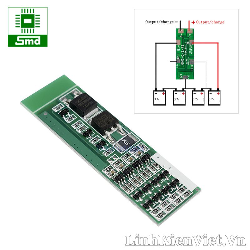 - Mạch Bảo Vệ Pin Lithium 18650 4S 16.8V 6A có dòng xả tối đa lên lến 6A, được sử dụng để sạc 4 cell pin Lithium hoặc 18650 có điện áp trung bình 3.7~4.2VDC mắc nối tiếp, mạch có chức năng ngắt khi đầy, bảo vệ chập nguồn, quá áp và pin dưới áp quy định.
