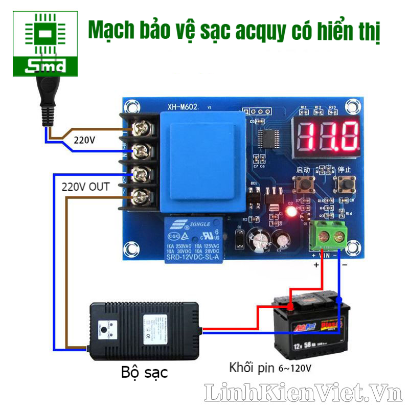 1. Mạch bảo vệ sạc acquy có hiển thị M602