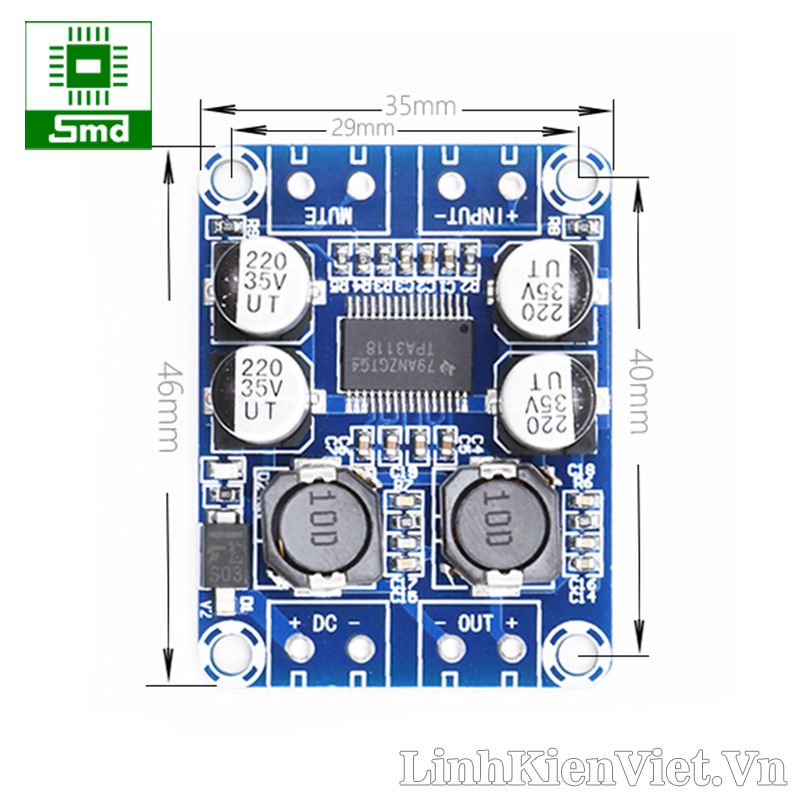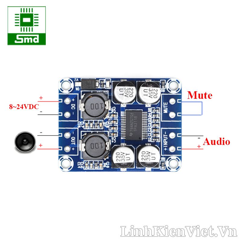 - Mạch khuếch đại âm thanh class D 1 kênh mono TPA3118 60W 8-24V (XH-M313)