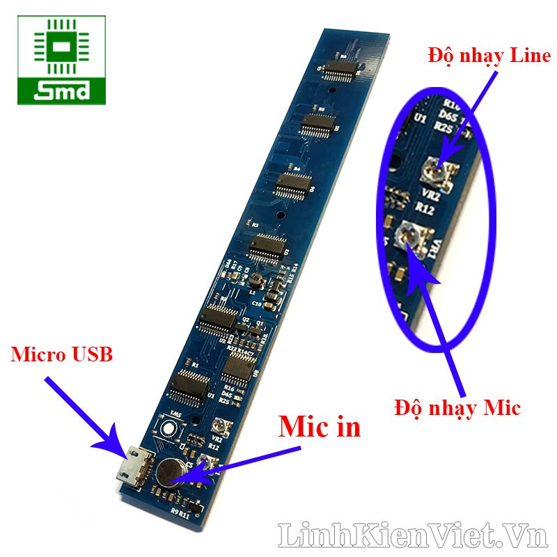 Tích hợp sẵn cảm biến âm thanh chỉ cần cắm nguồn là chạy (cần chọn chế độ Mic/Line)