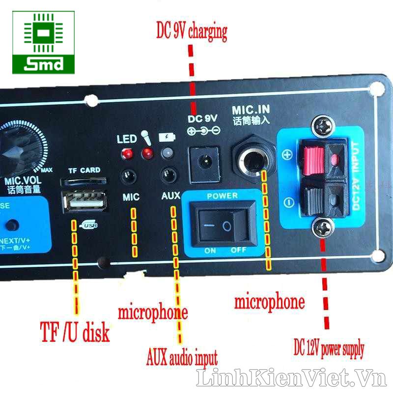 -- Mạch loa kéo giá rẻ 80W 335A đa chức năng gồm phát nhạc từ USB, thẻ nhớ (đầu đọc thẻ được tặng kèm), Phát FM, AUX, Bluetooth, Hát Karaoke,...