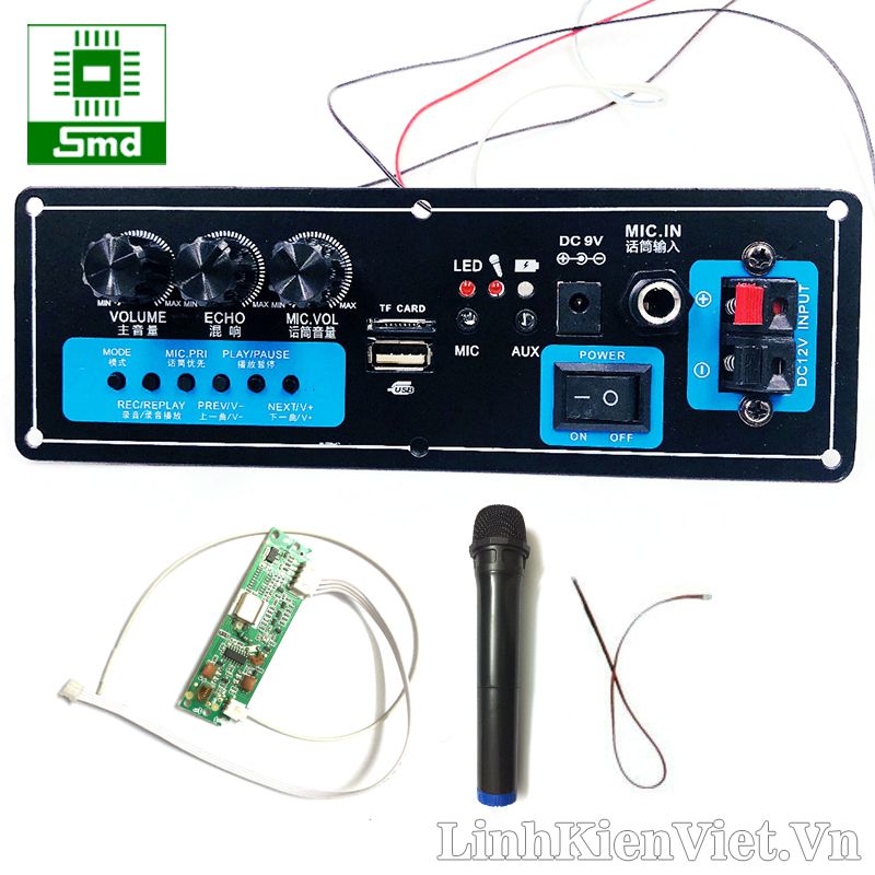 -- Mạch loa kéo giá rẻ 80W 335A + 1 Mic không dây đa chức năng gồm phát nhạc từ USB, thẻ nhớ (đầu đọc thẻ được tặng kèm), Phát FM, AUX, Bluetooth, Hát Karaoke,...