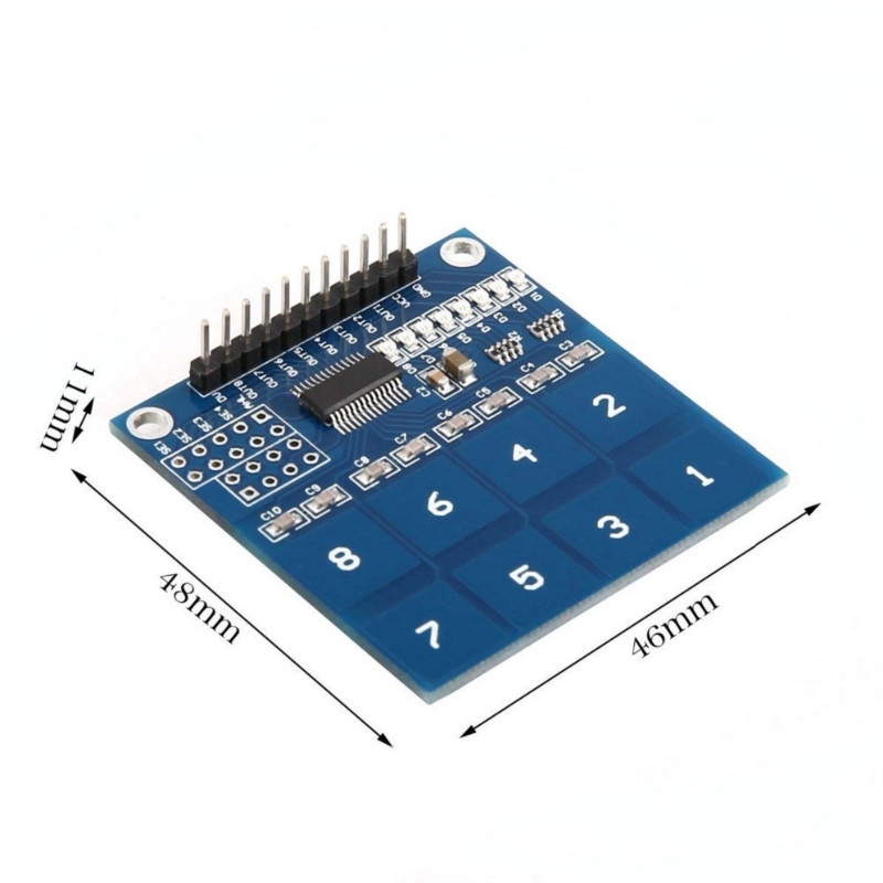 - 8 phím cảm ứng điện dung, tín hiệu tương ứng với 8 ngõ ra.