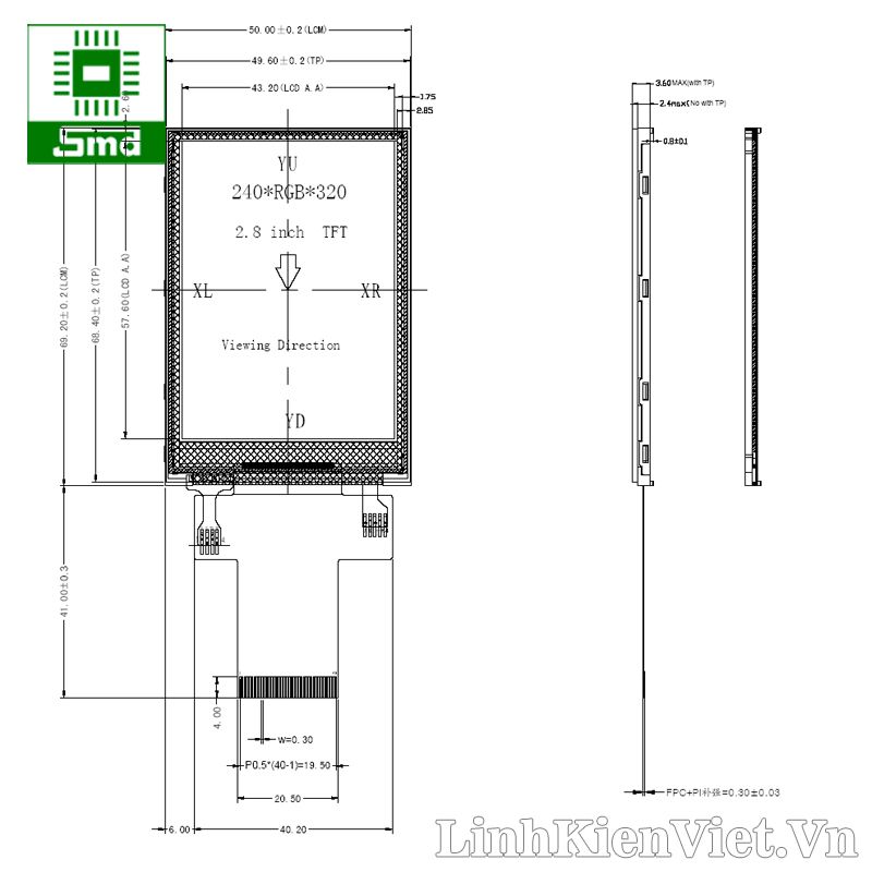 Màn hình LCD TFT 2.8 Inch 240x320 ILI9341 40 Pin