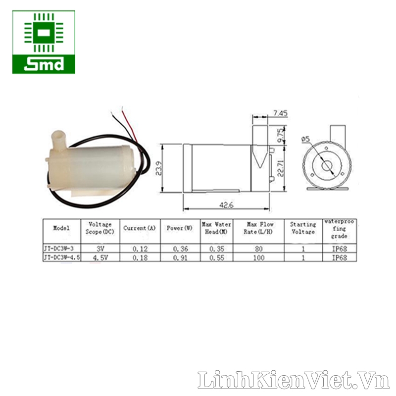 1. Máy bơm nước chìm mini 3W 3V-6V