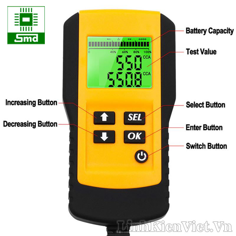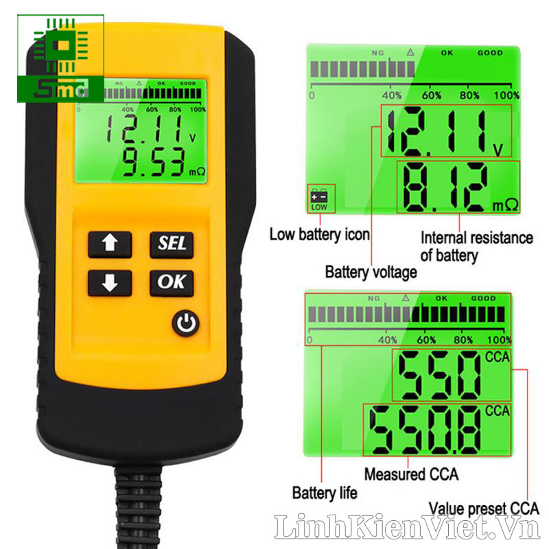 - 1x Máy kiểm tra Acquy xe hơi kỹ thuật số AE300 12V hiển thị LCD