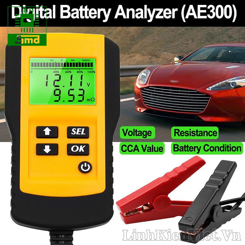 Máy kiểm tra Acquy xe hơi kỹ thuật số AE300 Có chức năng đo, kiểm tra và chẩn đoán acquy xe hơi, xe máy. Giúp xác định tình trạng của acquy để thay thế, sửa chữa.