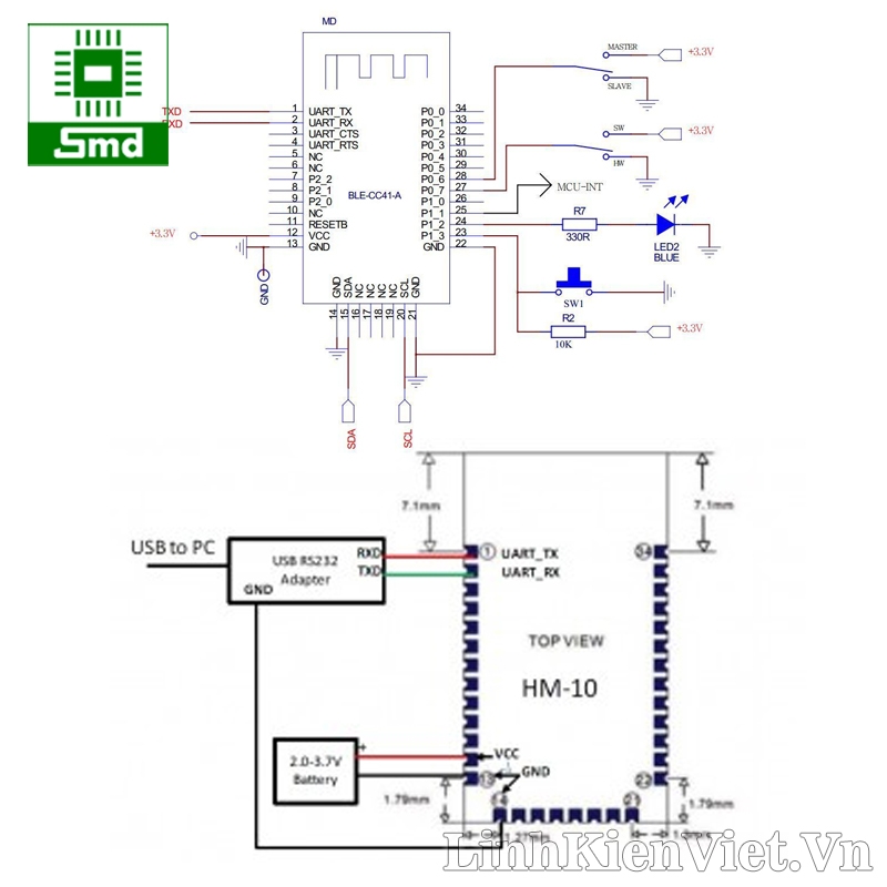 Module Bluetooth 4.0 CC2541(AT-05) HM-10 giao tiếp với Vi điều khiển qua giao tiếp UART giúp vi điều khiển có thể giao tiếp và truyền dữ liệu với các thiết bị sử dụng Bluetooth 4.0 như: điện thoại, máy tính bảng để thực hiện các ứng dụng truyền nhận và điều khiển thiết bị qua Bluetooth 4.0.