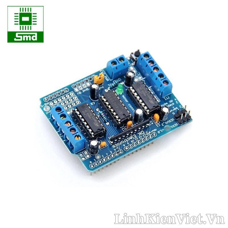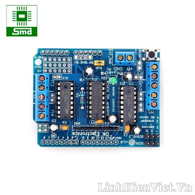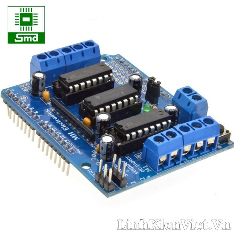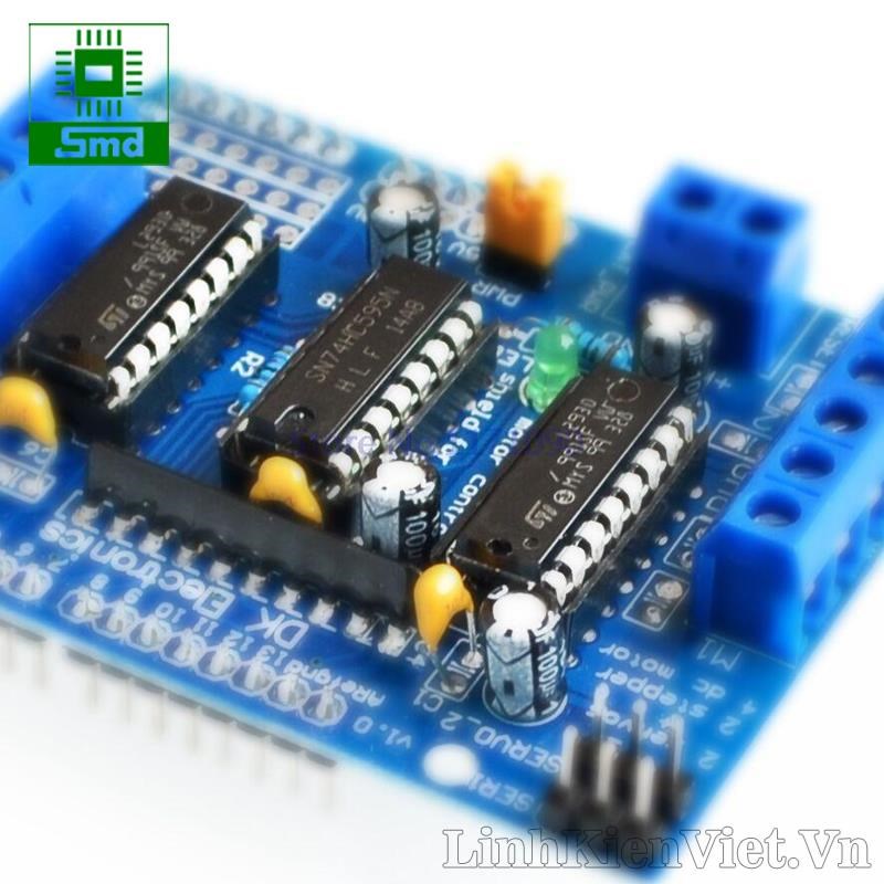 - Được thiết kế nhỏ gọn, tương thích với nhiều board Arduino như: Arduino uno R3, Leonardo, Mega2560. Như vậy giúp các bạn nhanh chóng điều khiển được động cơ.