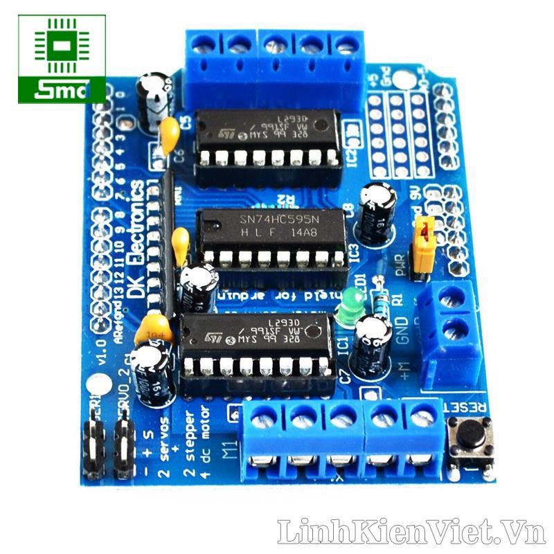 - Module điều khiển động cơ L293D là một shield mở rộng cho các board arduino, dùng để điều khiển các loại động cơ DC , động cơ bước và động cơ servo.