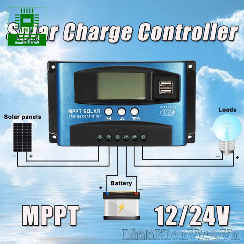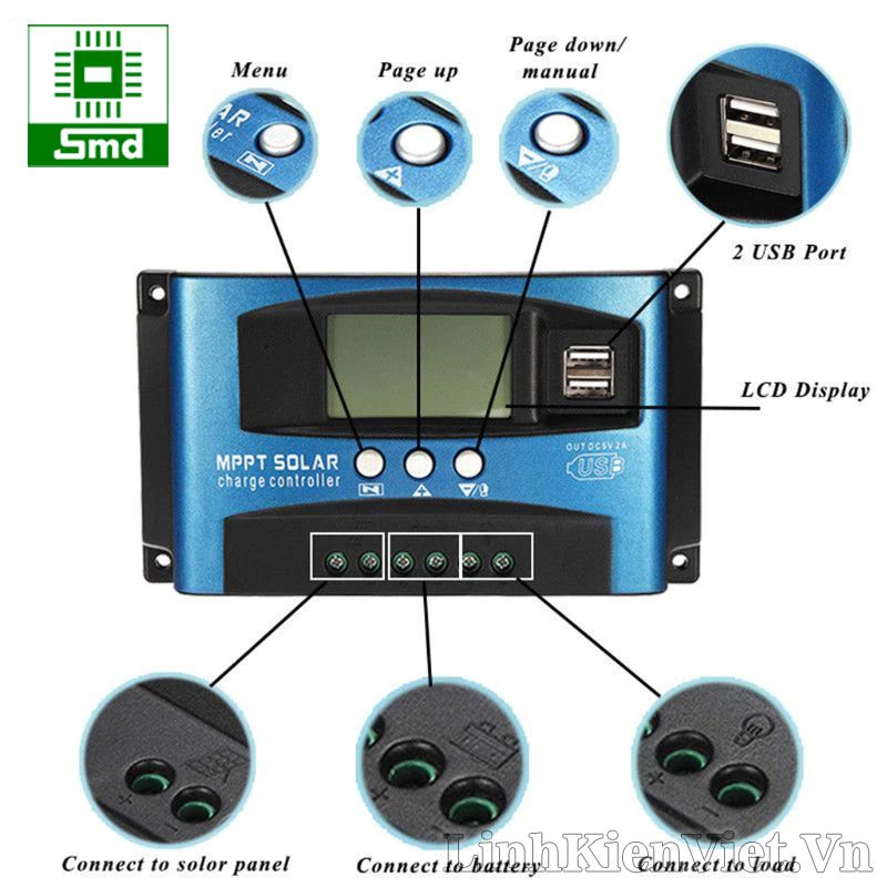Module điều khiển sạc pin mặt trời 40A 12V/24V, MPPT 40A, USB