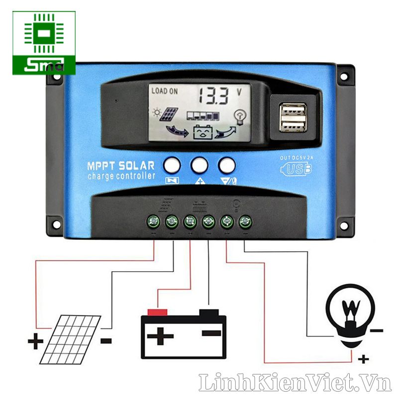 - Module điều khiển sạc pin mặt trời 40A 12V/24V, MPPT 40A, USB