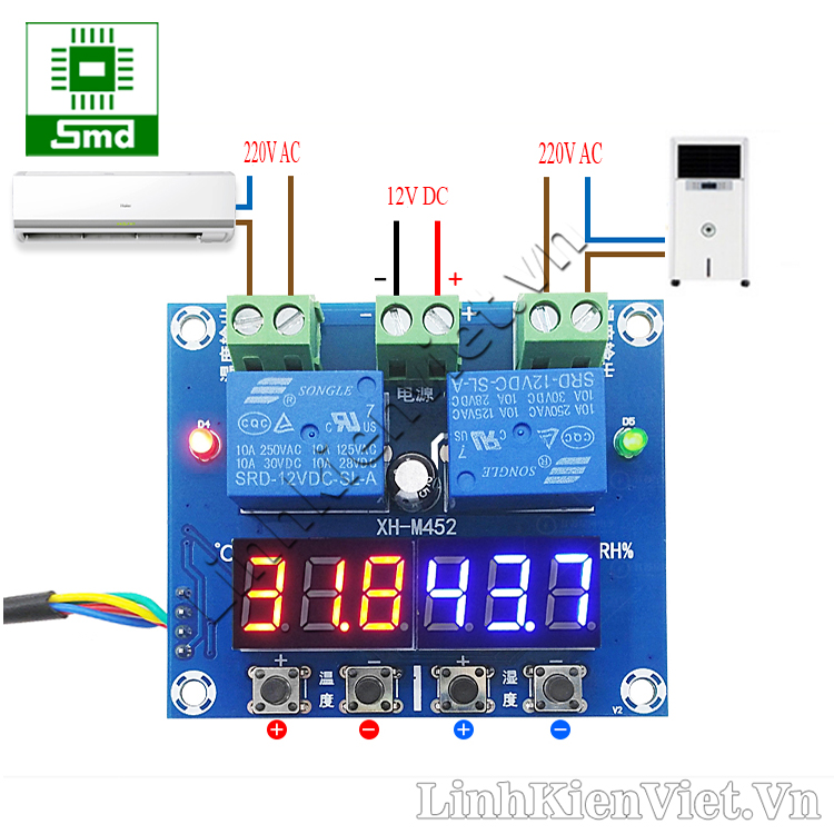- Module khống chế nhiệt độ - độ ẩm XH-M452 là module bao gồm 1 cảm biến nhiệt độ và 1 cảm biến độ ẩm