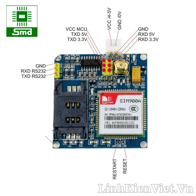 - Điều khiển qua tập lệnh AT (GSM 07.07 ,07.05 and SIMCOM enhanced AT Commands)