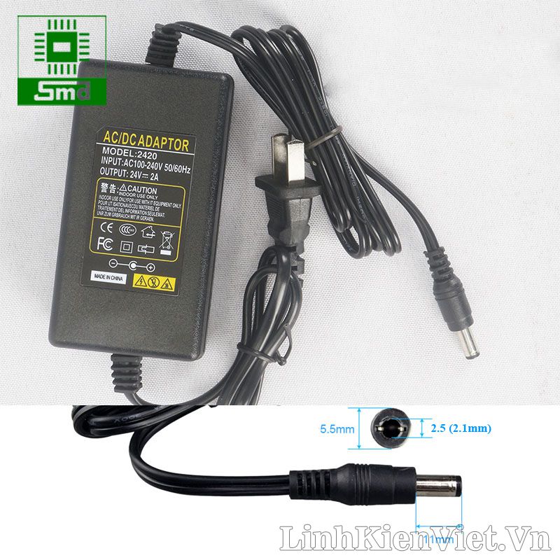 1. Nguồn xung vỏ nhựa 24V 2A, đầu ra jack DC 5.5mm tiện dụng.