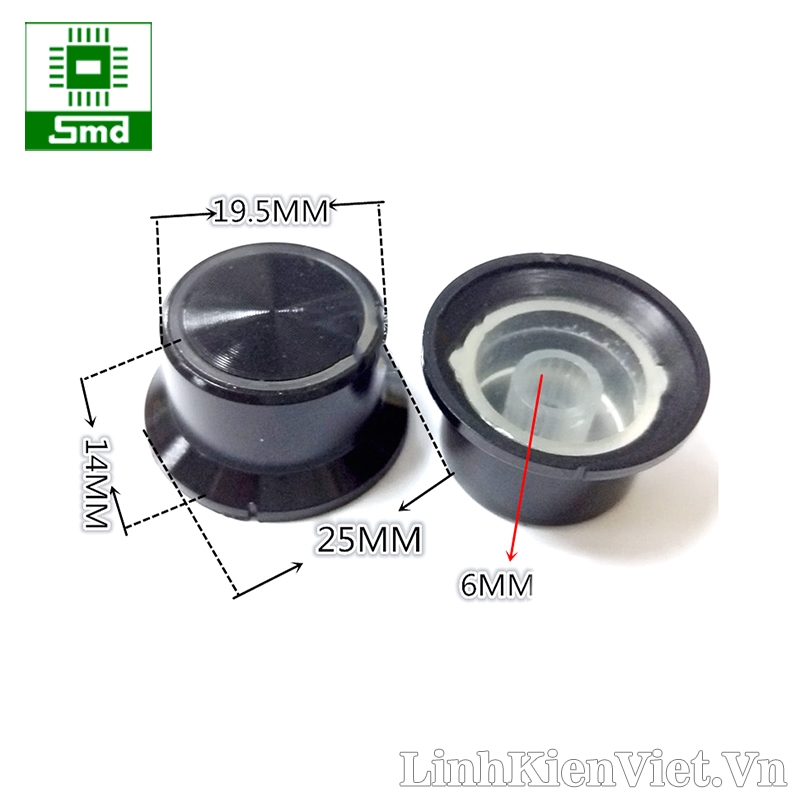 1. Núm vặn mạ kim loại đen hắt sáng 25mm trục 6mm V1