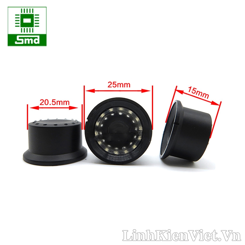 1. Núm vặn mạ kim loại đen hắt sáng 25mm trục 6mm V2