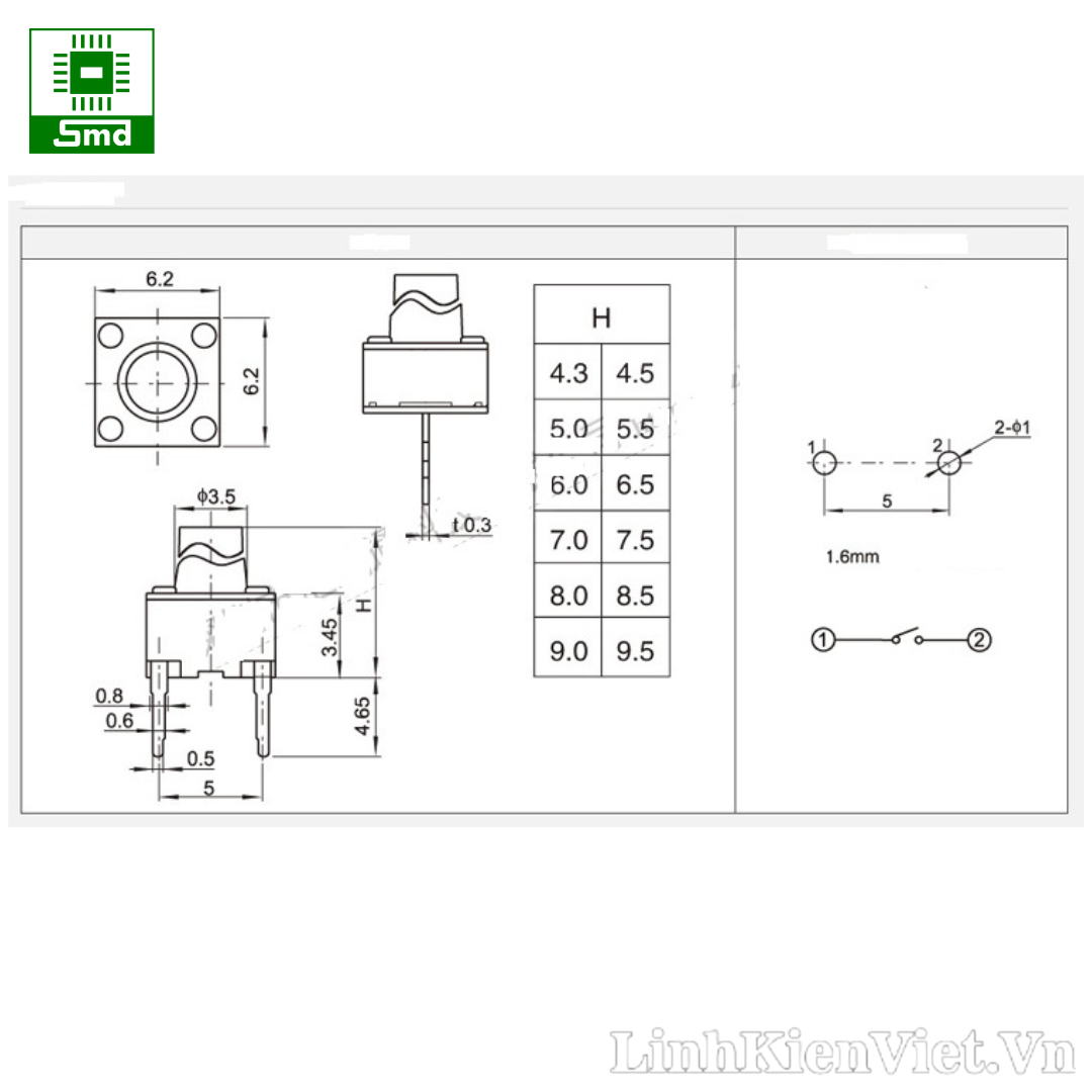 - Công tắc nhấn A03-03 6 chân (Nhấn giữ)