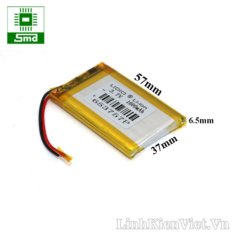 Pin lithium 653757 1600mAh 3.7V