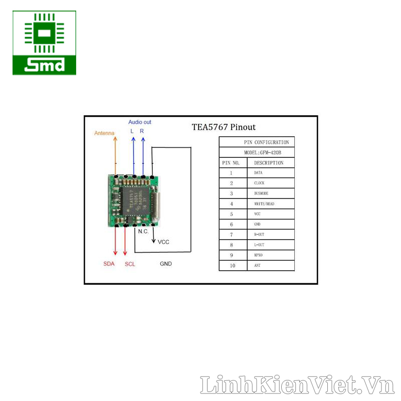 Module thu sóng FM TEA5767 có kích thước nhỏ gọn dùng trong các ứng dụng thu sóng FM như Đài radio, truyền thanh không dây... Giao tiếp I2C giúp ta dễ dàng điều khiển và truyền thông với các thiết bị khác.