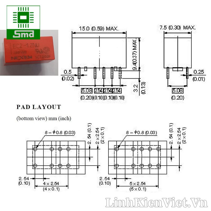 - 1xRelay NEXEM EC2-12NU 8 chân (12V)