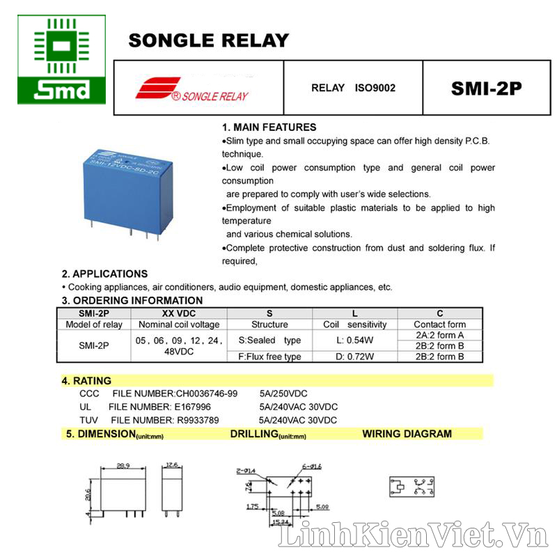 - Relay SONGLE SMI-12VDC-SL-2C T90 (5A - 8 chân)