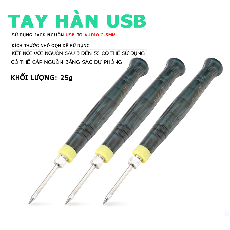Nhỏ gọn, tiện lợi là một lợi thế đối với tay hàn mini và khi sản phẩm này chỉ cần sử dụng nguồn nuôi 5V với chân USB giúp bạn có nhiều sự lựa chọn nguồn khi sử dụng( nguồn USB máy tính, sạc dự phòng...)