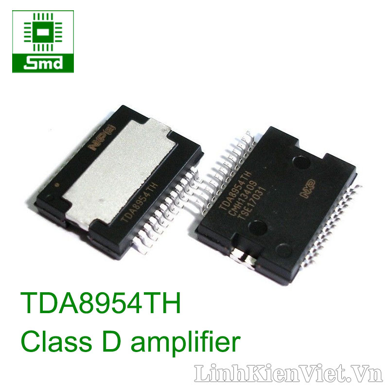 TDA8954 là IC khuếch đại âm thanh Class D với công suất lớn và hiệu suất cao. Nó có các tính năng bảo vệ tín hiệu vào DC, tắt tiếng, bảo vệ ngắn mạch và bảo vệ nhiệt, chế độ chờ khi không phát nhạc…đầu ra có thể là âm thanh nổi hoặc đơn âm hiệu suất cao. IC tiêu hao năng lượng thấp. Nó được thiết kế đạt công suất lên đến 2 × 210 W với tải 4 Ω trong ứng dụng Single-Ended (SE) hoặc 1 × 420 W vào tải 8 Ω trong ứng dụng BTL (Bridge-Tied Load) mono. - IC khuếch đai lớp D cho hiệu suất rất cao (~93%). Quá trình tái tạo âm thanh trung thực, tương đương bộ khuếch đại kết hợp AB. - Ứng dụng mạch khuếch đại âm thanh,loa subwoofer...