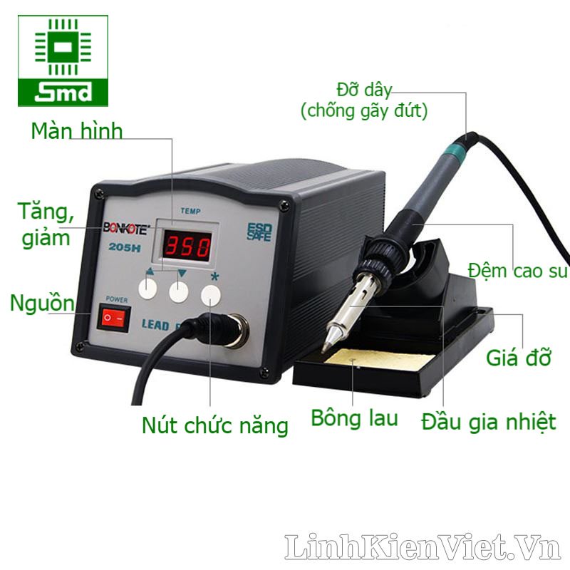 Nổi bật với khả năng hàn tần số cao 400KHz, khả năng gia nhiệt nhanh cùng các tính năng đi kèm như cầu chì bảo vệ, ngủ tự động khi không sử dụng,...