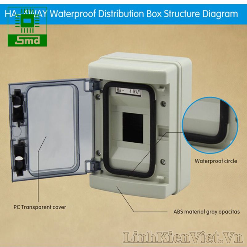 - 1x Tủ điện nhựa gắn tường HA-4WAY (140x210x100mm)